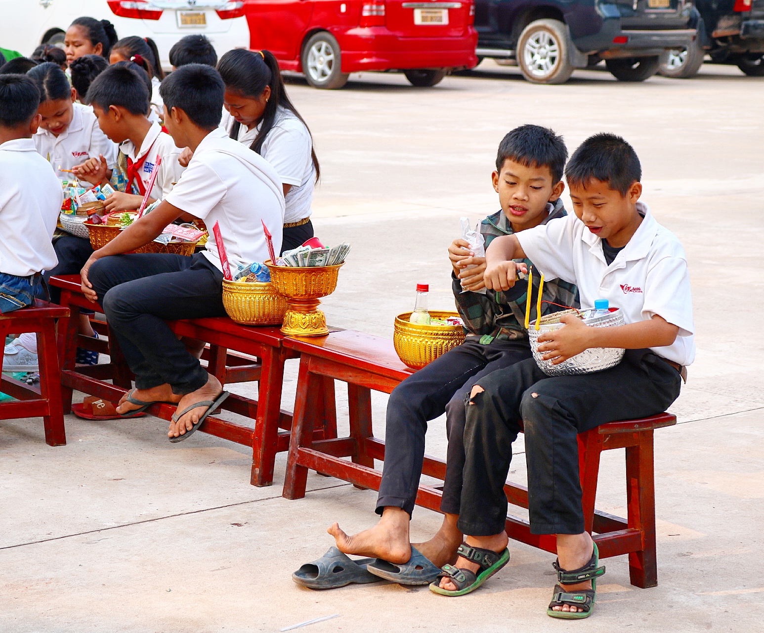 Heute wurde feierlich die schon Anfang Februar fertiggestellte Sporthalle an der primary school Ban Phang Heng in einer offiziellen Zeremonie eingeweiht. Unter dem Segen von Mönchen des örtlichen Klosters wurde die Sporthalle mit einer baci Zeremonie (siehe unter Z wie Zeremonie) und einer Show der Kinder eingeweiht – die Bilder sprechen für sich ;)