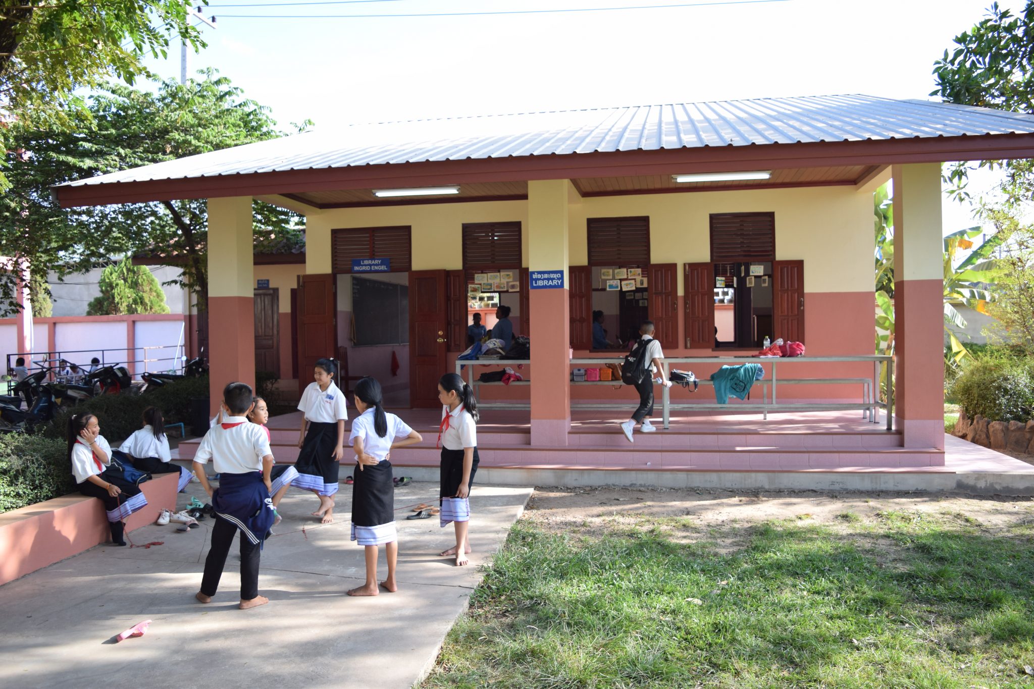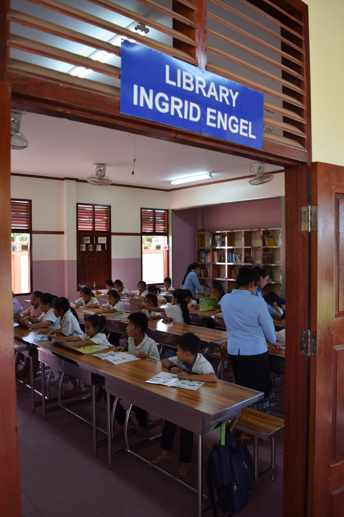 Mit Hilfe großzügiger Spenden konnte der Bau und die Ausstattung einer Bibliothek für die Grundschule Ban Phang Heng finanziert werden. Zu Beginn des neuen Schuljahres 2018/19 wurde die zu Ehren der Stiftungsgründerin „Ingrid Engel library“ getaufte Bibliothek an die Schule und vor allem an die Kinder übergeben. Während der Schulzeit wird die Bibliothek für den Unterricht genutzt, nach Ende der regulären Schulzeit steht sie allen interessierten Kindern jeden Nachmittag von 15:00 bis 16:00 Uhr offen. Betreut werden die Kinder dabei von drei Lehrkräften, die die sechs bis elfjährigen Kindern beim Lesen lernen und üben unterstützen.